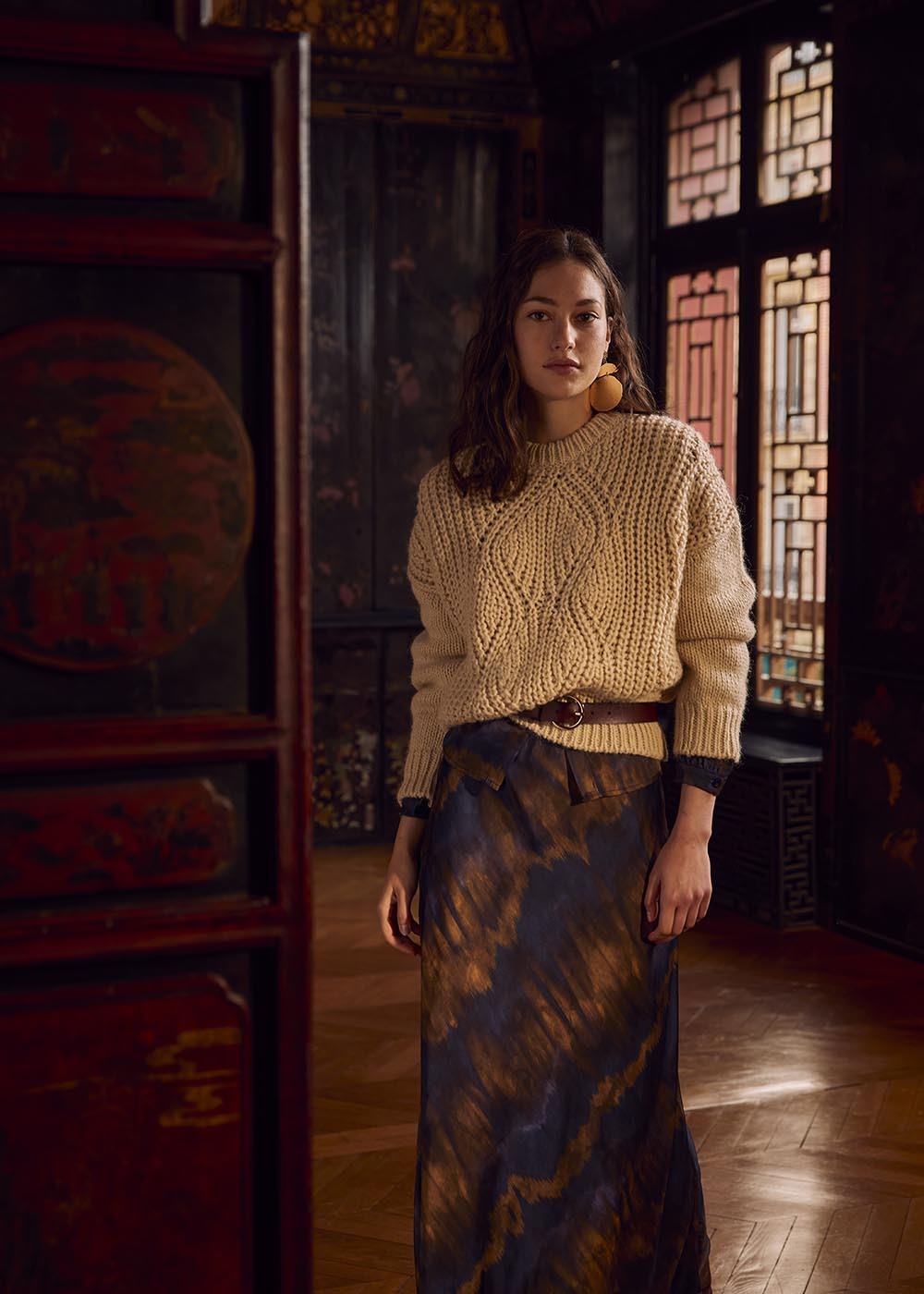 Jupe portefeuille mi-longue en velours côtelé terracotta