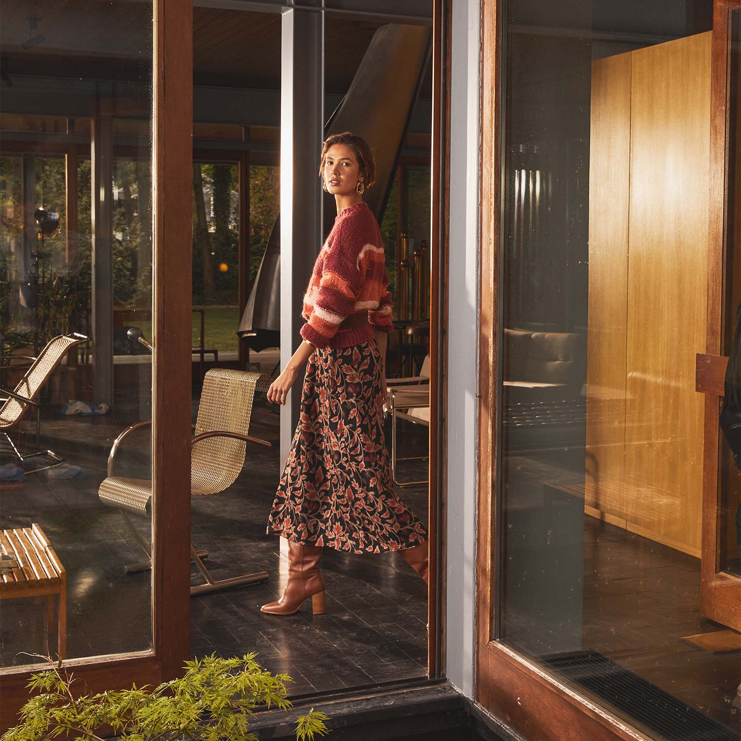 Jupe mi-longue boutonnée bordeaux à imprimé léopard