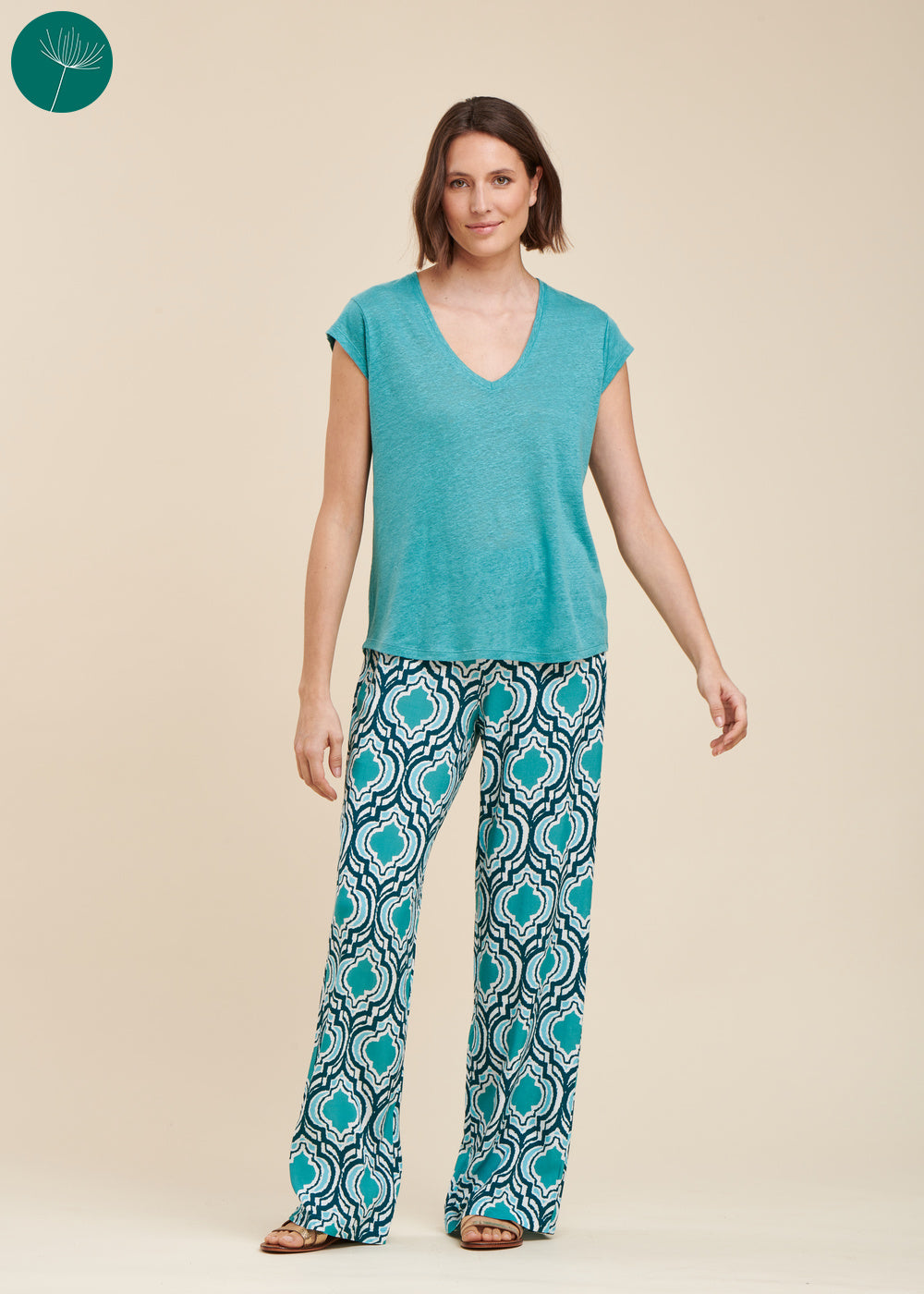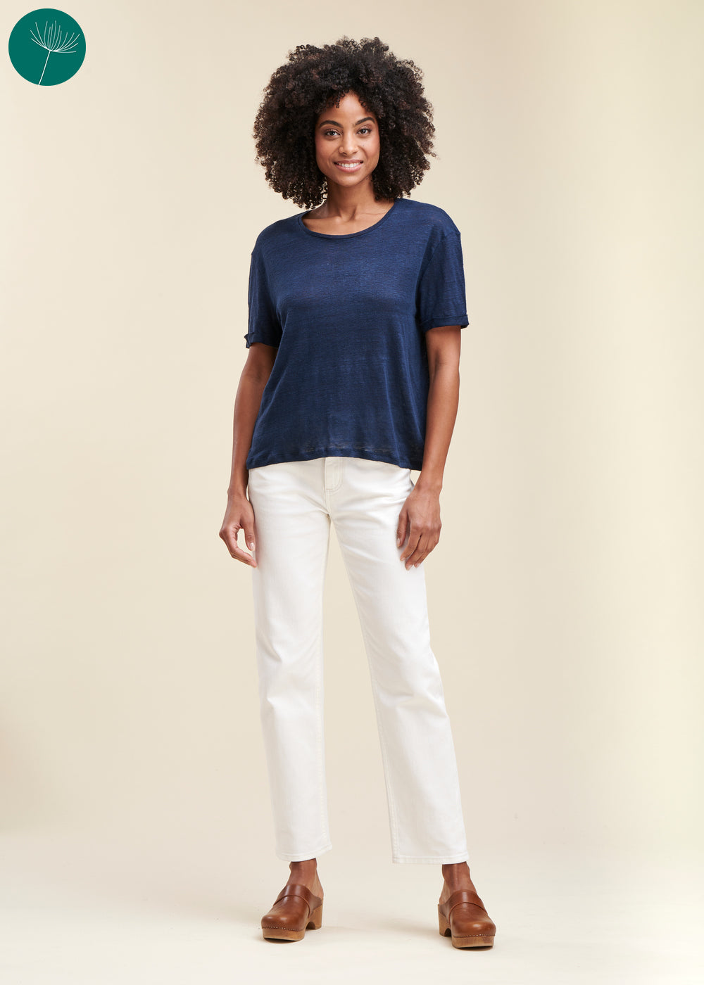 T-shirt droit bleu pétrole col rond en lyocell lin