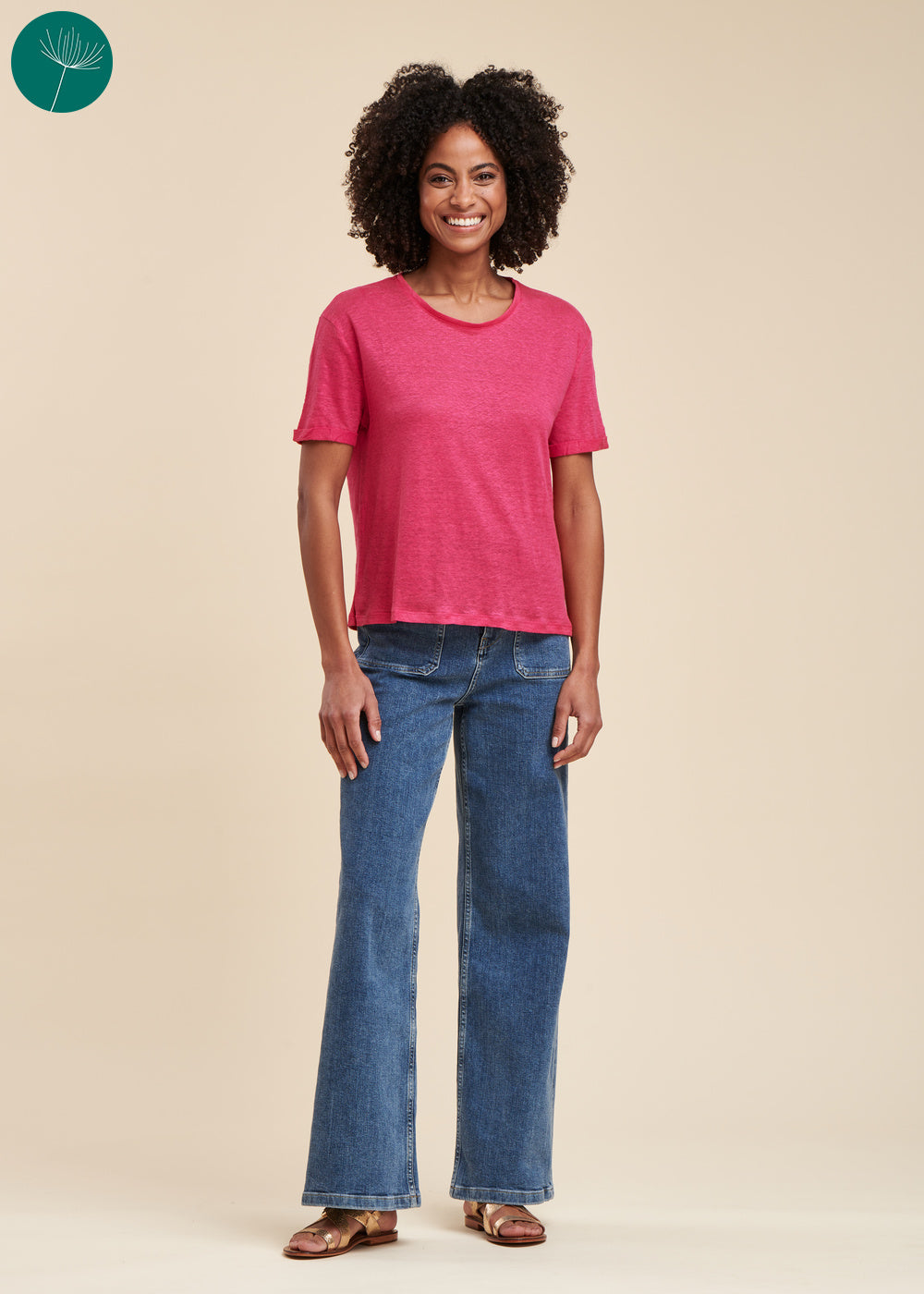 T-shirt droit rose fuchsia col rond en lyocell lin