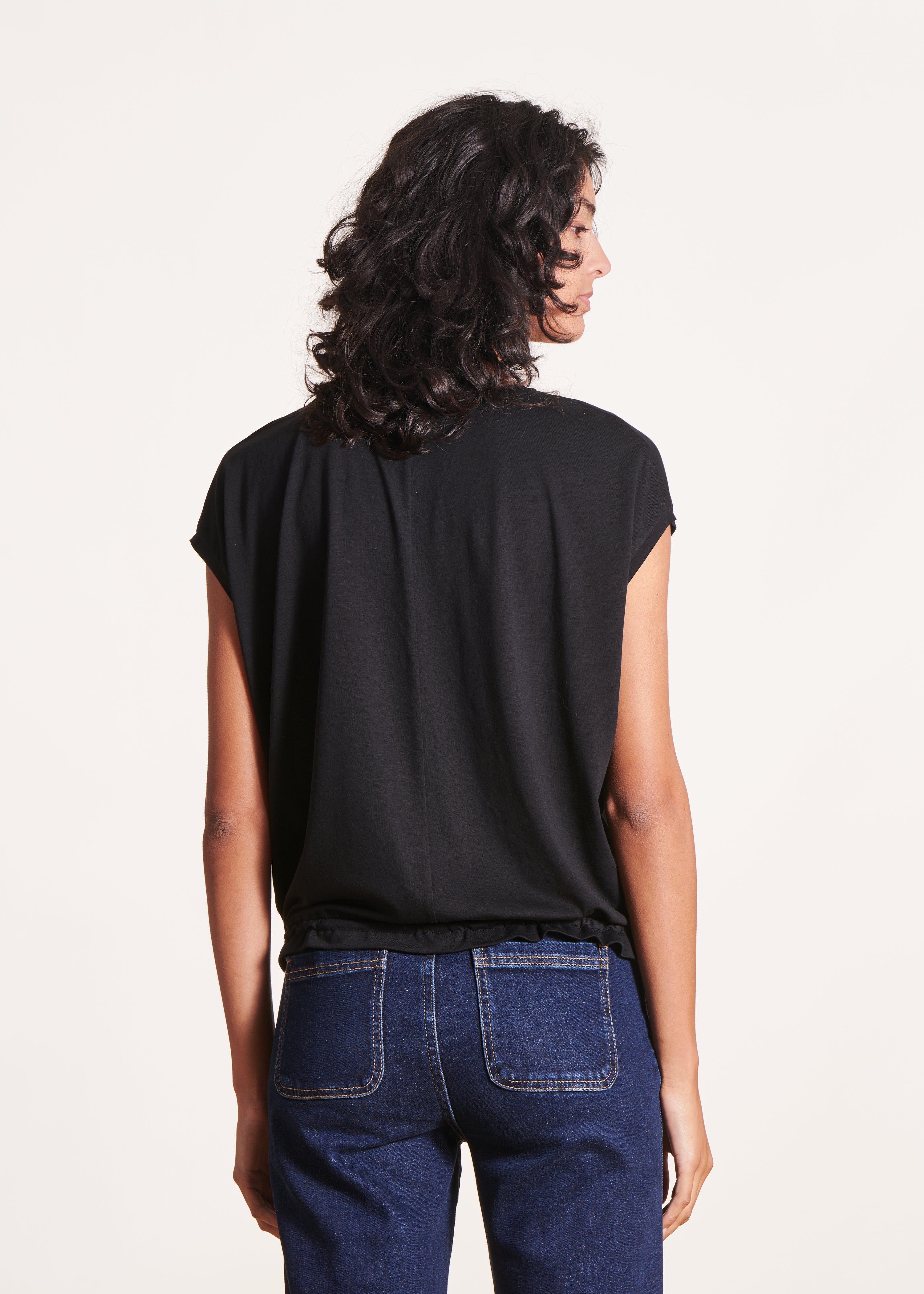 schwarz blusiges T-Shirt aus Lyocell mit kurzen Ärmeln