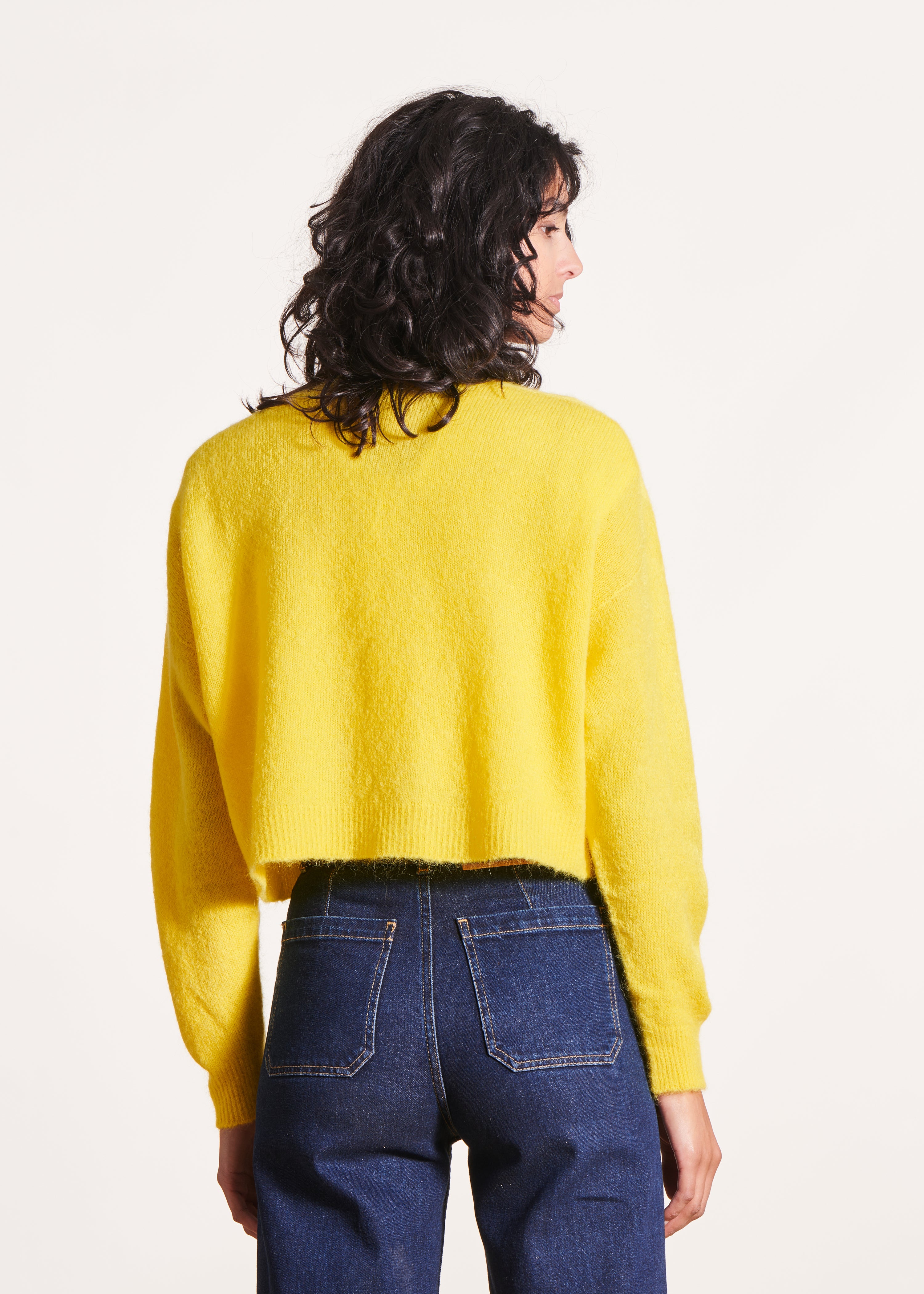 Kurzer Pullover aus feinem Strick in Entenblau mit Rundhalsausschnitt