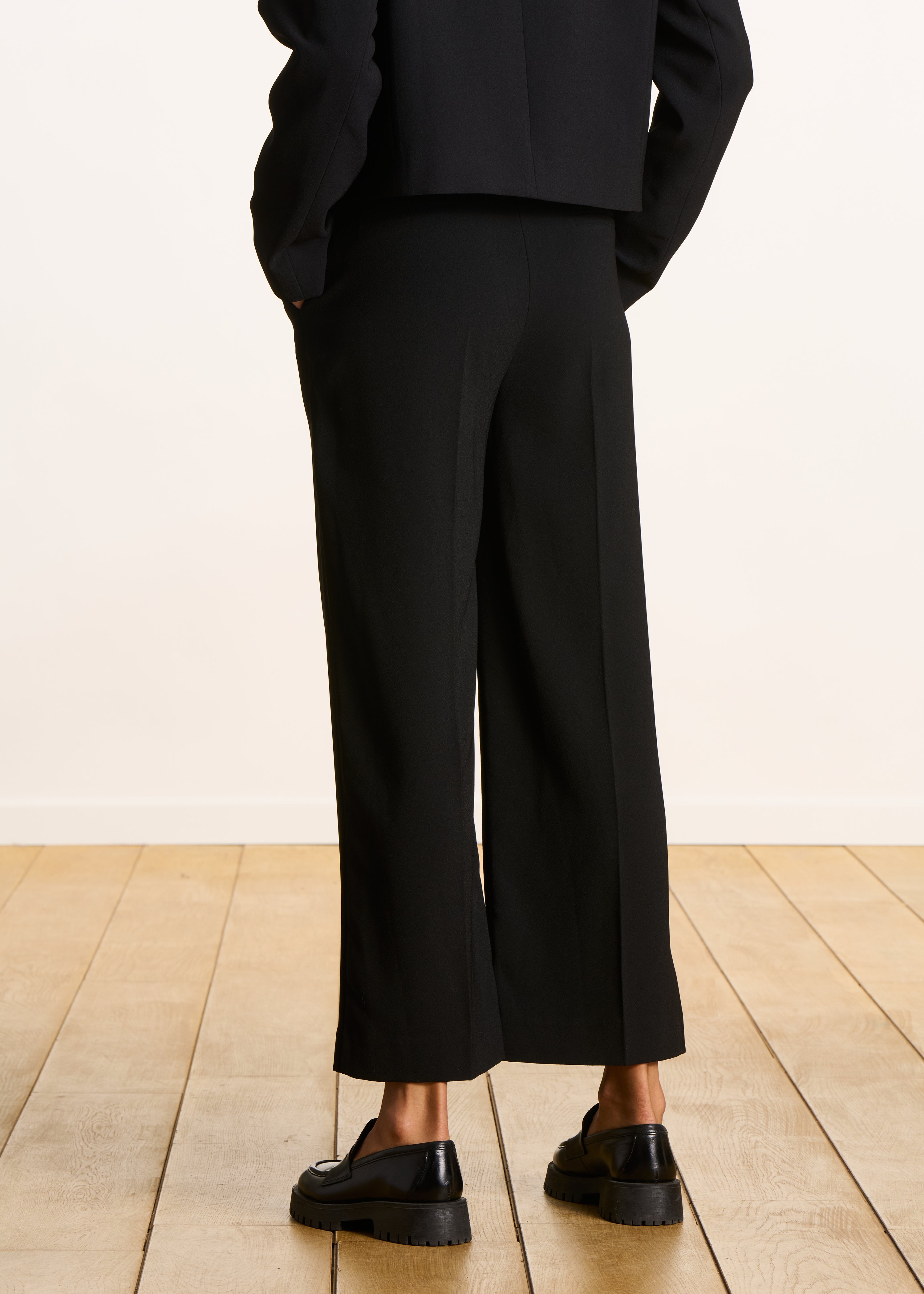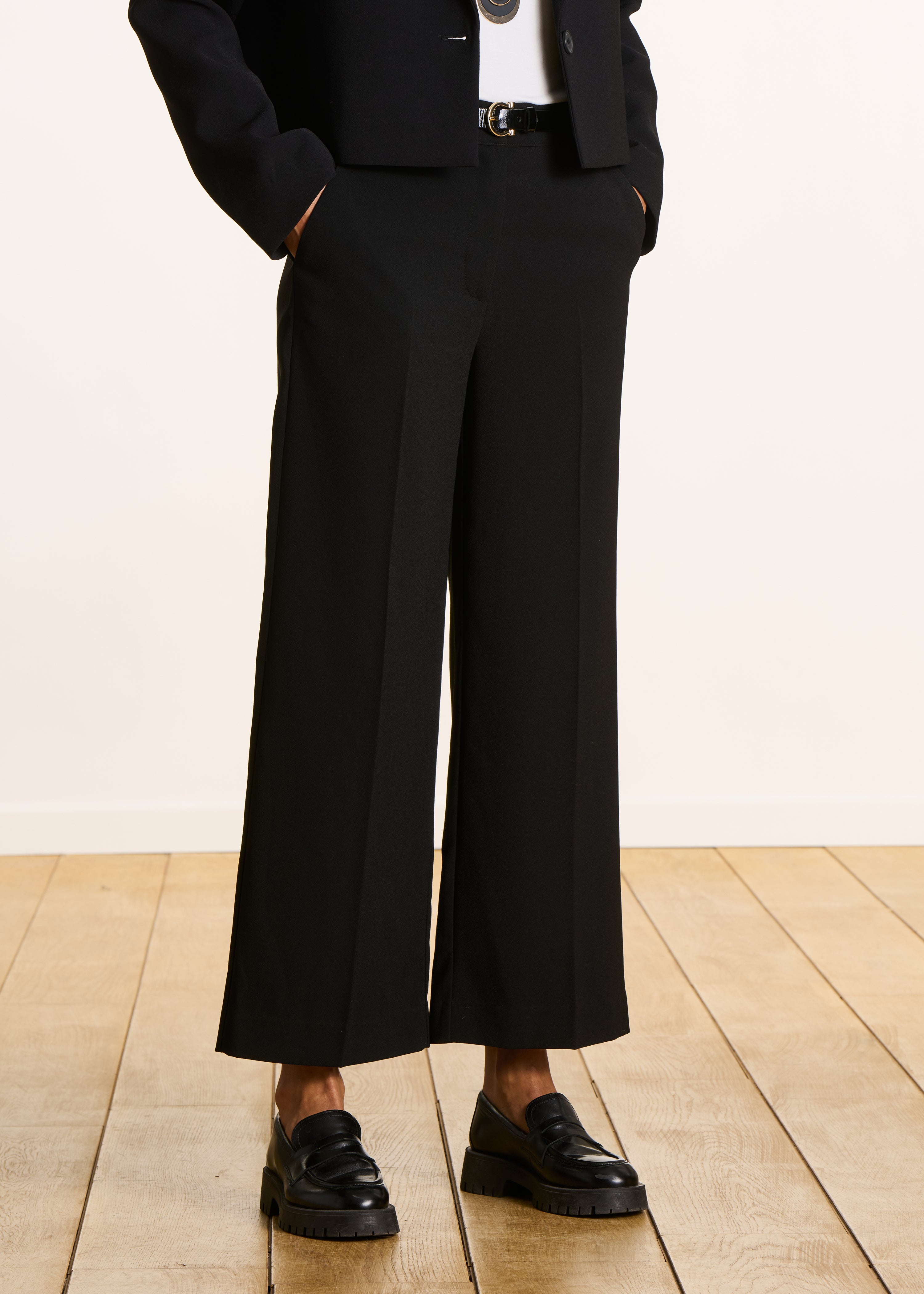 Pantalón negro ancho 7/8 con cinturón para anudar y cintura elástica
