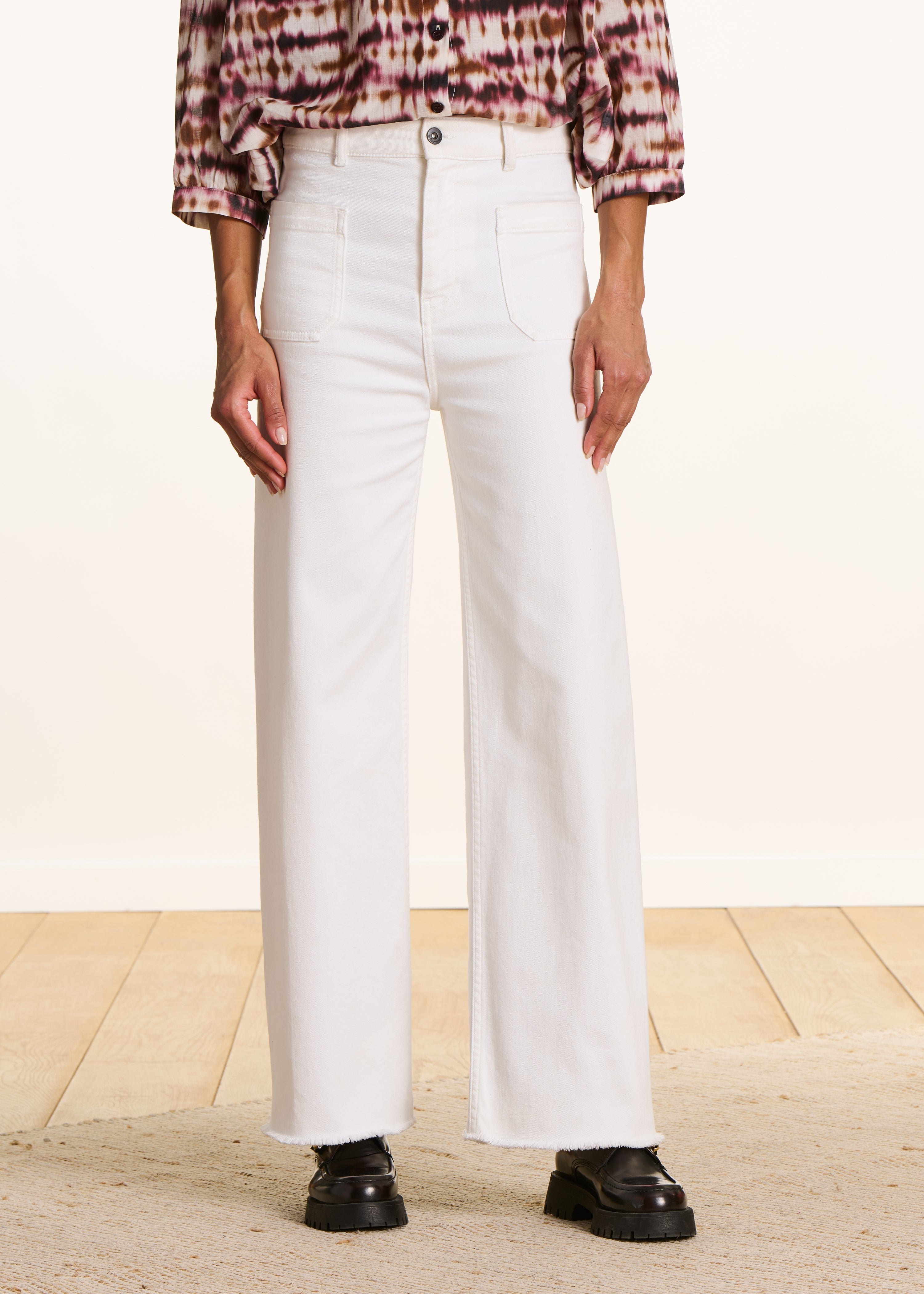 Légèreté et style. Sa coupe 7/8ème évasée et sa finition bord franc ajoutent une touche d'élégance décontractée.