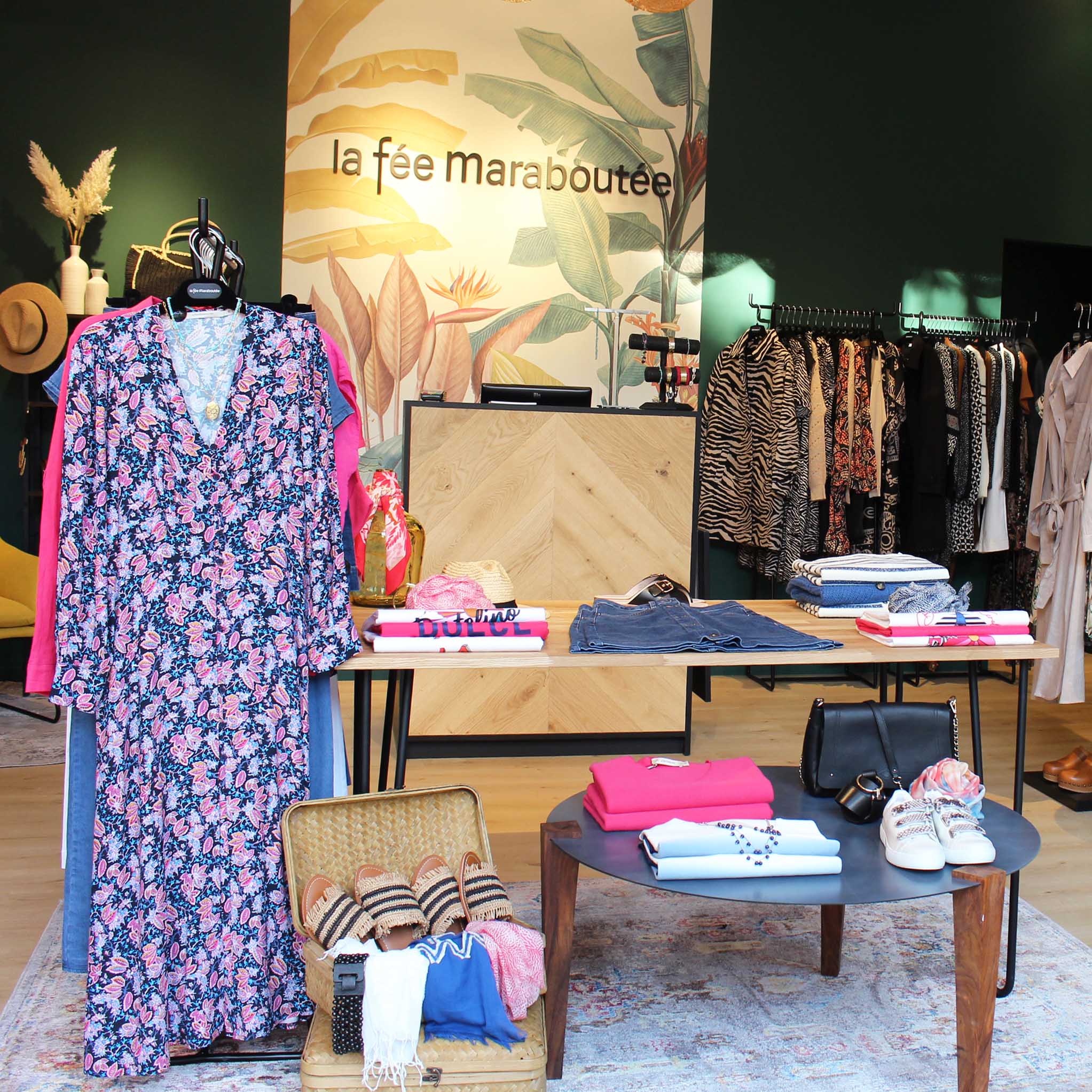 Plongez dans l'univers de la fée maraboutée, où chaque boutique est un récit, une invitation à l'aventure. Nos espaces, décorés avec une attention particulière à la diversité culturelle et au confort, reflètent l'essence même de notre marque : un métissage d'influences, de souvenirs, et de créativité. En véritables alcôves de curiosité, nos boutiques se transforment en scènes de vie où chaque objet a une histoire, chaque coin, une surprise. Véritables lieux de vie, ils vous attendent pour explorer, essayer et vivre une expérience shopping hors du commun, où chaque visite est une page nouvelle à écrire.