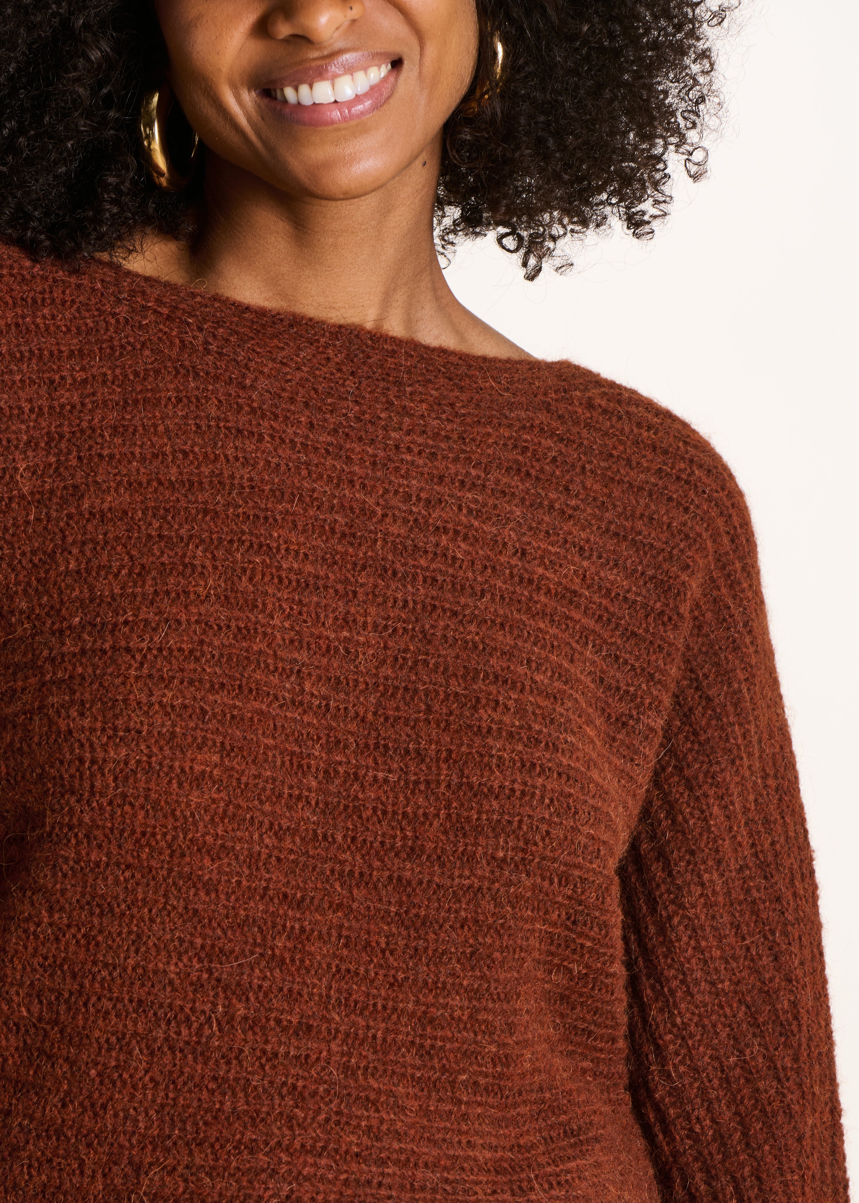 - Pull en maille côtes perlées horizontales - Large encolure bateau - Manches longues chauves-souris - Coupe ample