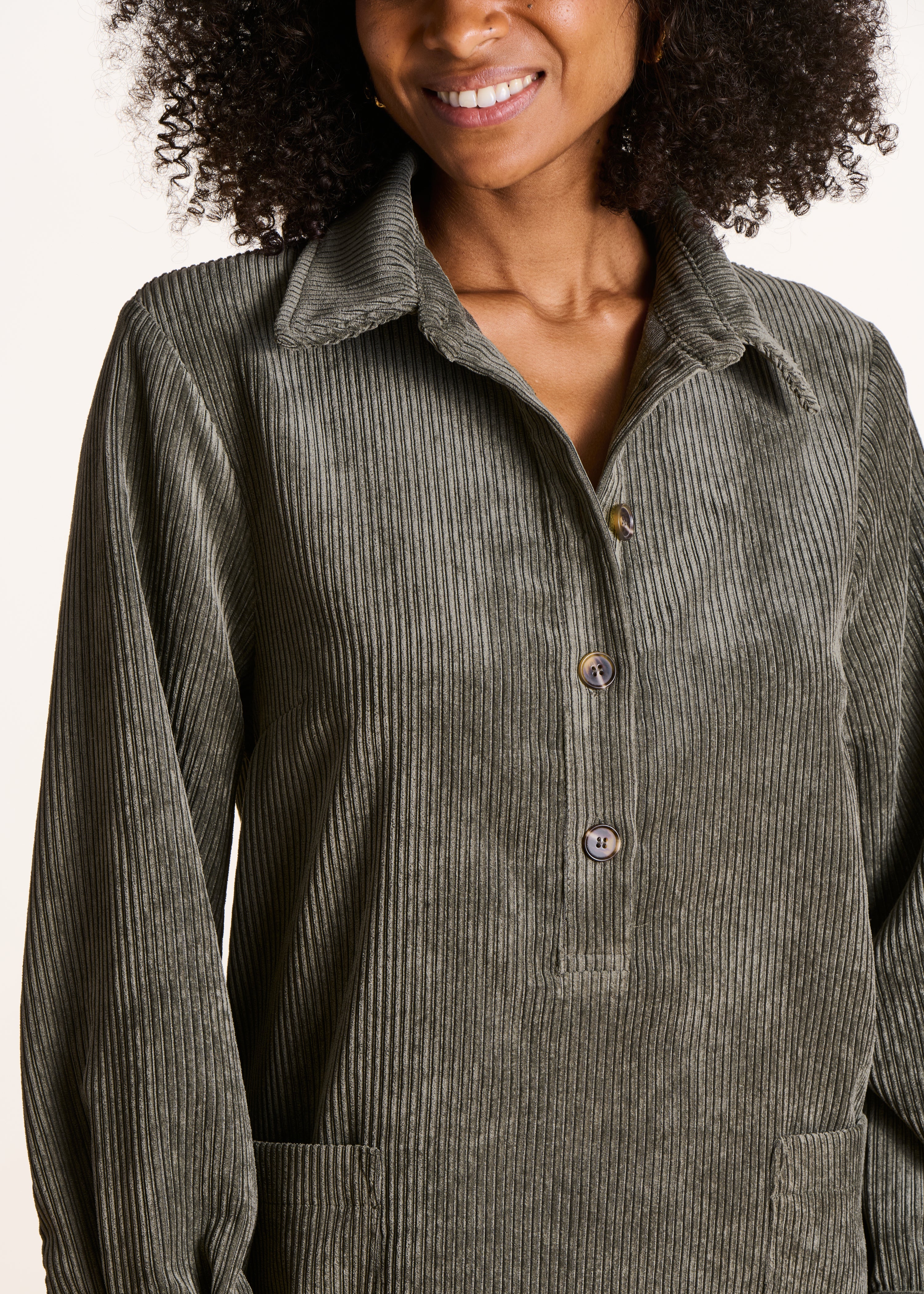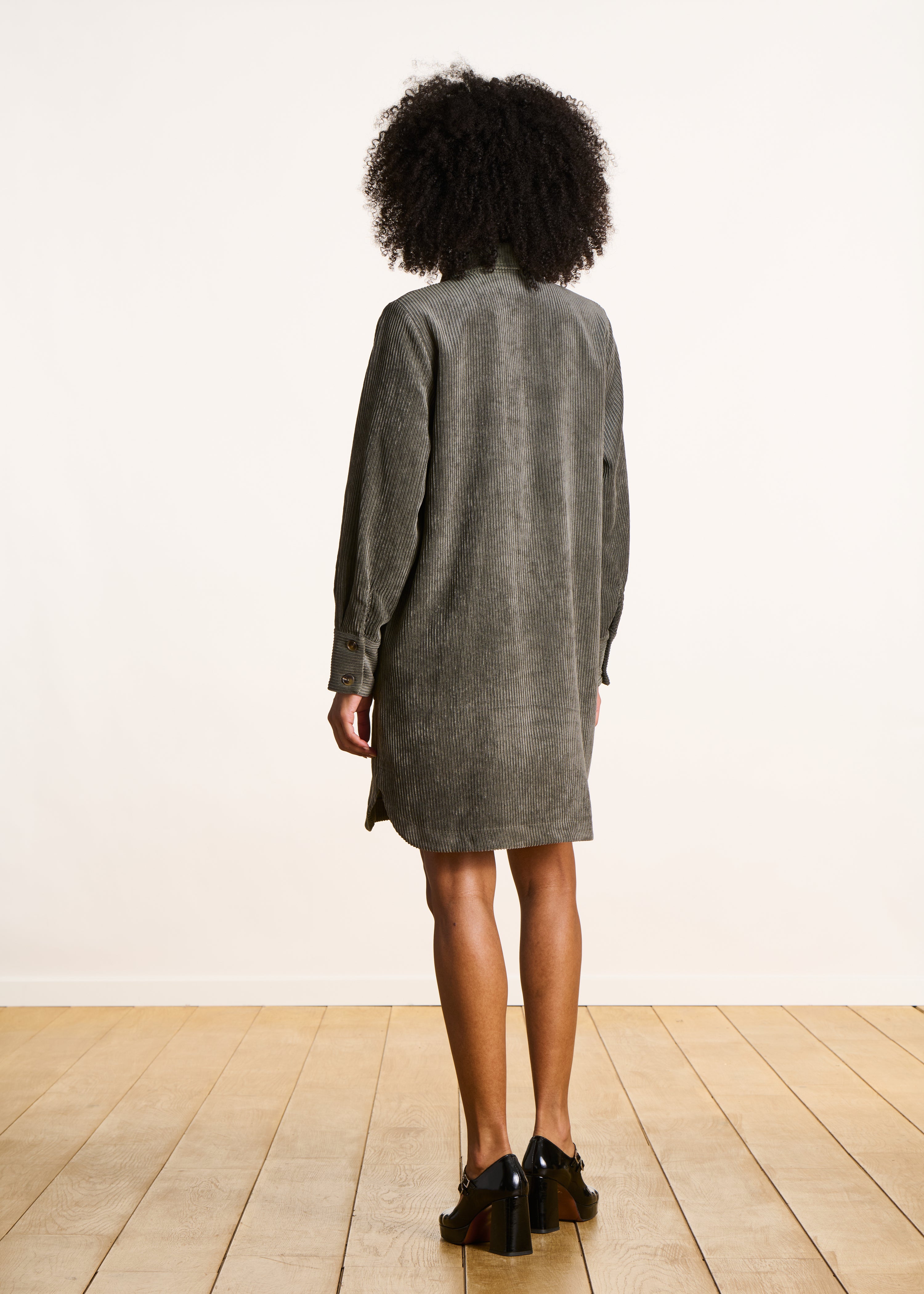 - Robe chemise courte en velours souple côtelé - Manches longues boutonnées avec poignet - Bas liquette - Poches dans coutures côtés
