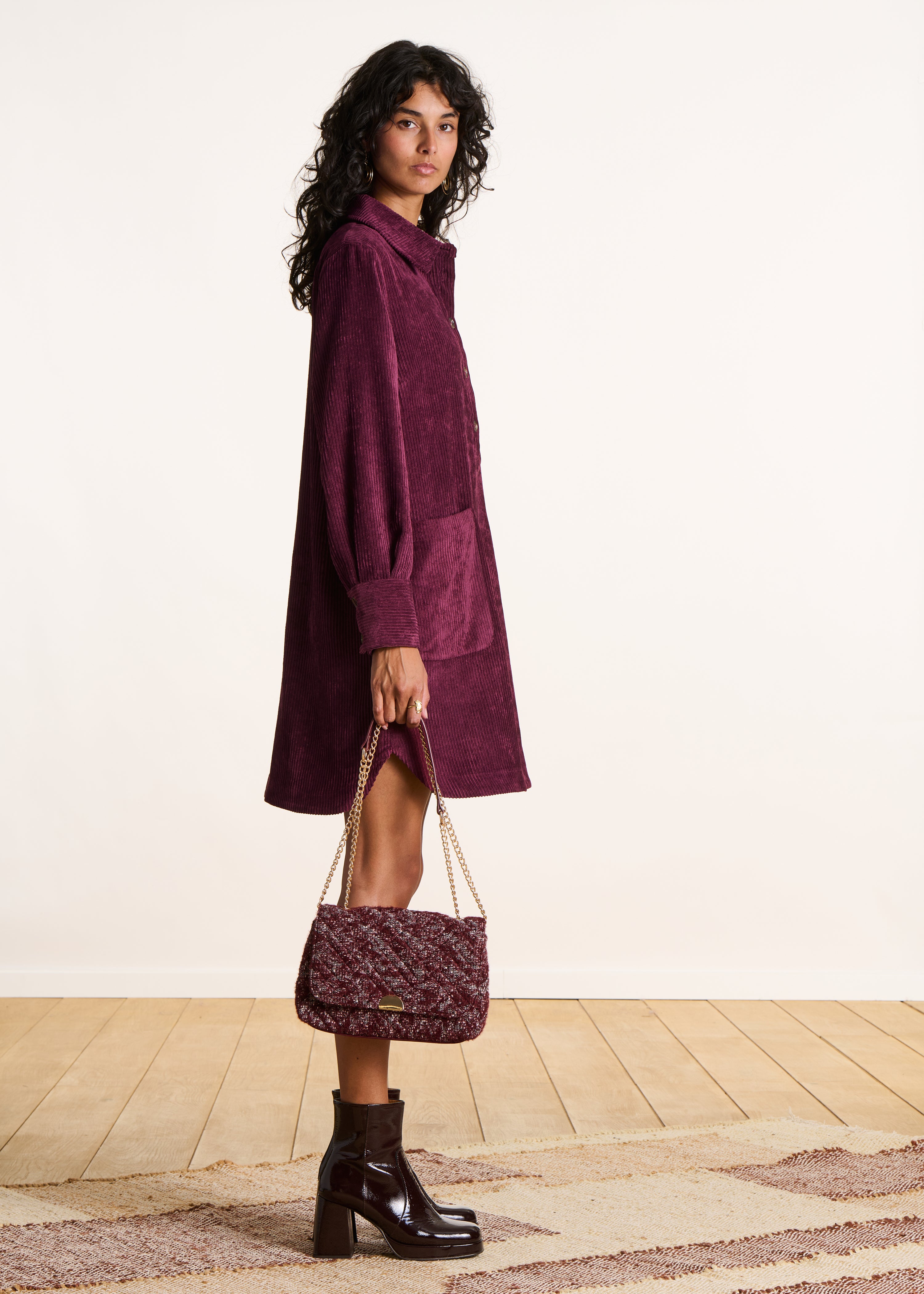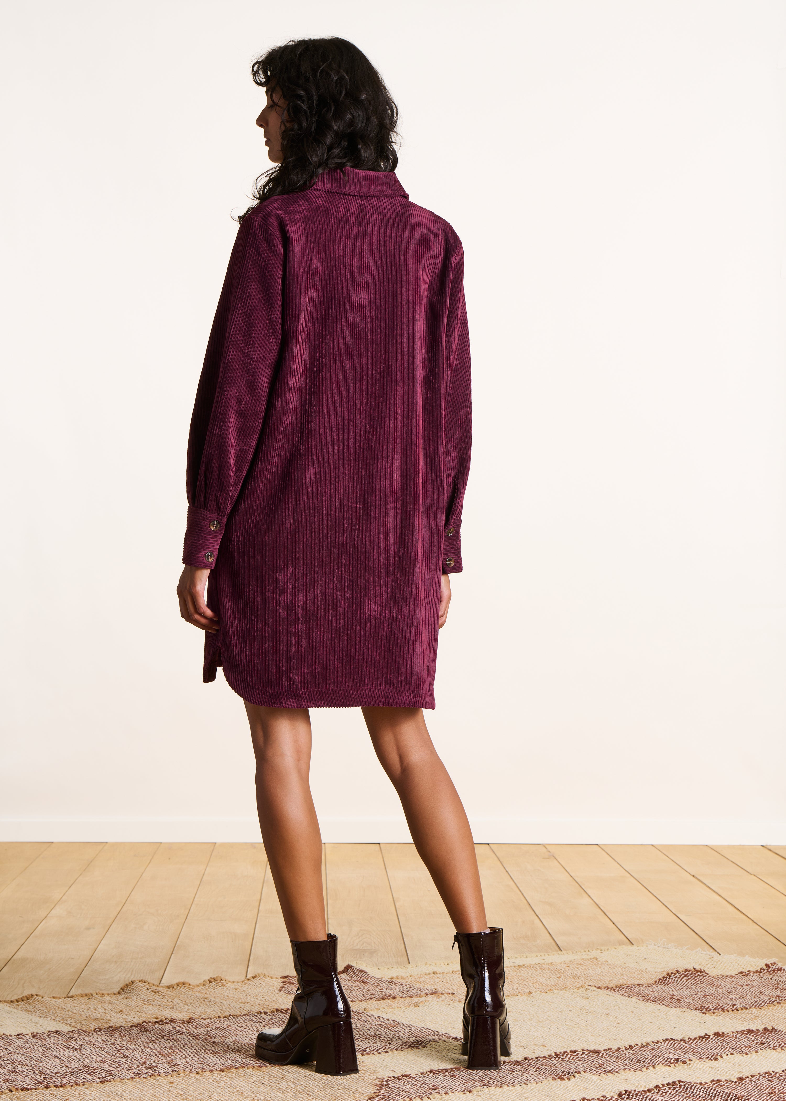 - Robe chemise courte en velours souple côtelé - Manches longues boutonnées avec poignet - Bas liquette - Poches dans coutures côtés